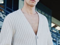 Wunderschöner Cardigan im Rippenstrickdesign mit Knopfleiste und hochwertigem Lederpatch.