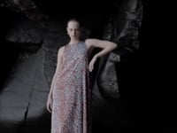 Das Material wird in der Manufaktur in Nepal per Hand aus Seidensatin gewebt. Anschließend wird der Print im Handsiebdruckverfahren auf der Seide platziert.