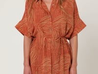 Kurzarmkleid aus fließender Seide mit Crepedesign im Allover Print Epic. Das Kleid überzeugt mit einer durchgehenden Knopfleiste und einem Bindedetail an der Taille.