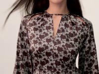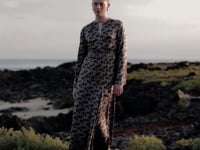Maxikleid aus fließender Seite im All Over Print Palm Spring. Das Kleid überzeugt vor allem durch den schönen offenen Rücken, die Cut-Outs am Ausschnitt und den leichten Trompetenärmeln.