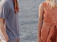 Das Artwork Prose ist wie eine Spur im Sand. Immer in Bewegung, nie endgültig. Strukturen tauchen auf, verschwinden, setzen sich neu zusammen. Mal erinnert es an eine exquisite Maserung im Holz, mal an sanfte Wellen, mal nur an Rhythmus. Der Print gewinnt Tiefe durch dieses freie Spiel mit Assoziationen und macht ihn sinnlich und wie geschaffen für ein außergewöhnliches modisches Statement.