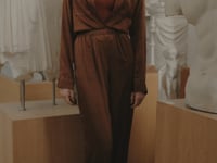 Das Material wird in der Manufaktur in Nepal per Hand aus Seidensatin gewebt. Anschließend wird der Print im Handsiebdruckverfahren auf der Seide platziert.
